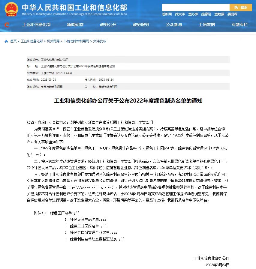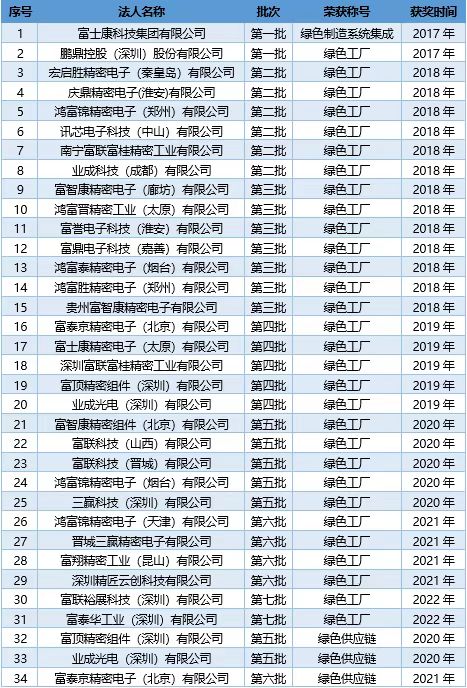近日,工业和信息化部公布了2022年度绿色制造名单,富士康体系富泰华工业(深圳)有限公司、富联裕展科技(深圳)有限公司2家企业荣登榜单,喜获国家级“绿色工厂”称号。