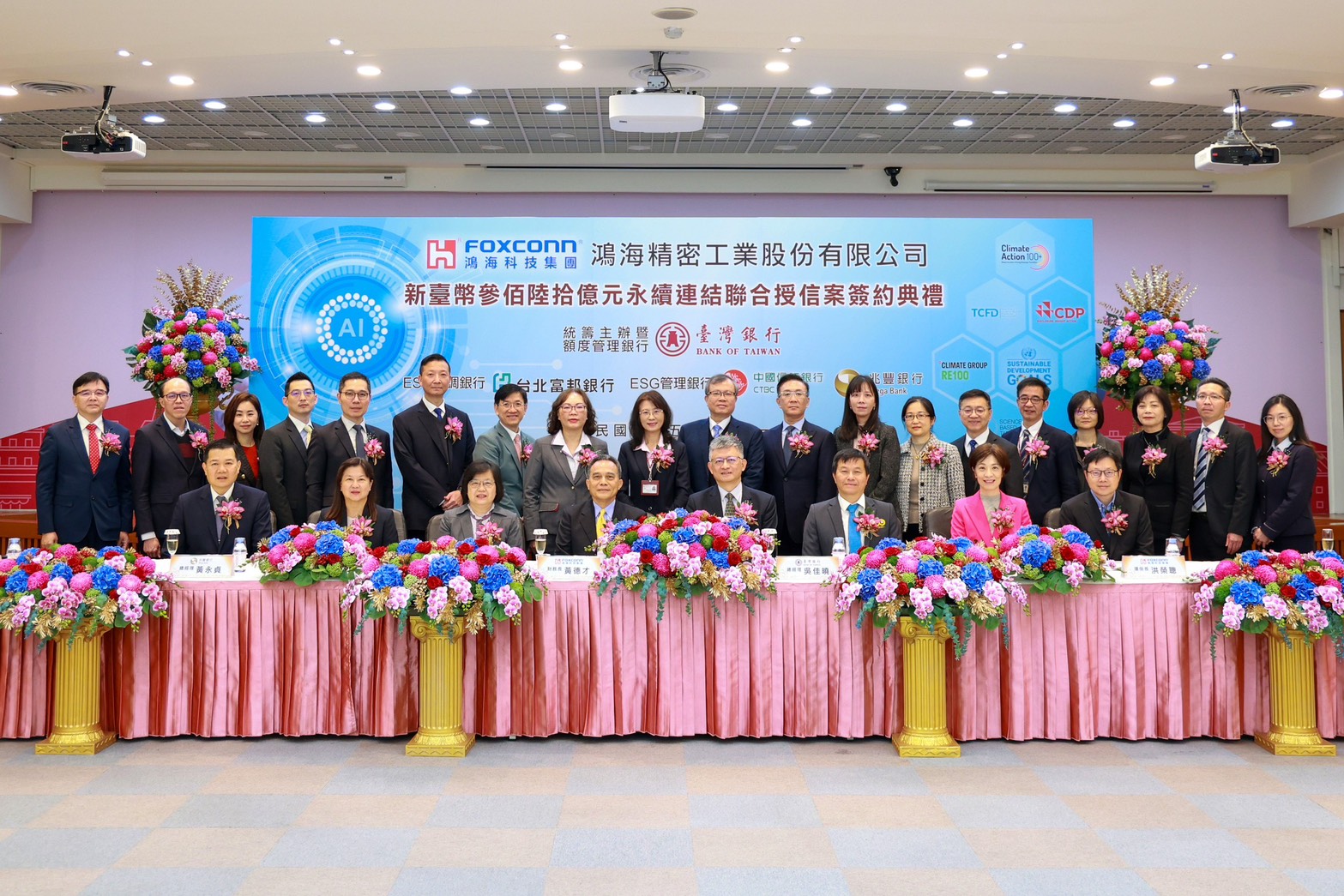 【台灣台北–2026年2月11日】全球最大科技製造平台服務商鴻海精密工業股份有限公司(下稱「鴻海」)委由臺灣銀行統籌主辦之新臺幣360億元「永續連結指標聯貸案」,已於2026年2月11日完成簽約。簽約儀式假臺灣銀行舉行,由鴻海財務長黃德才先生與臺灣銀行總經理吳佳曉先生共同主持。